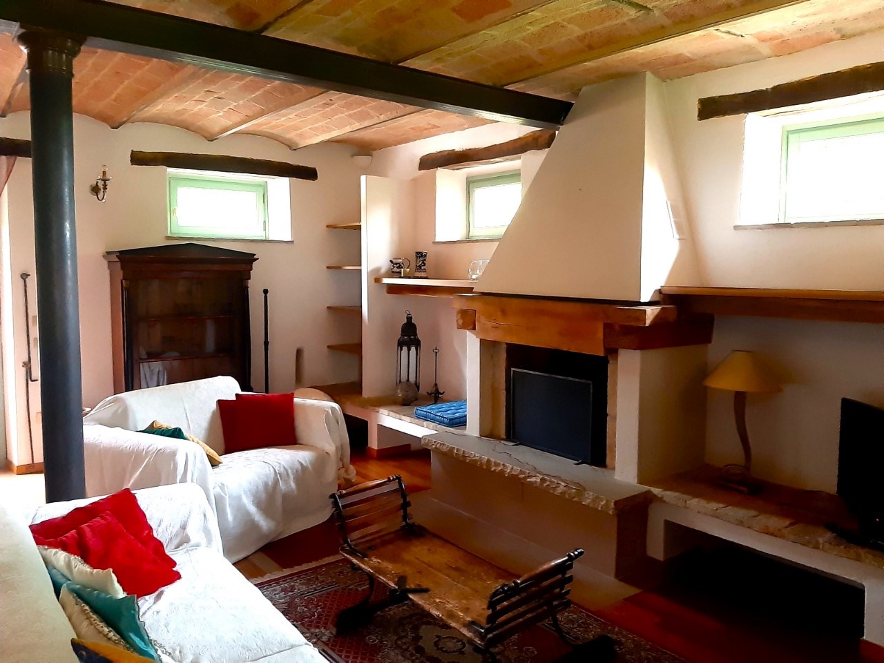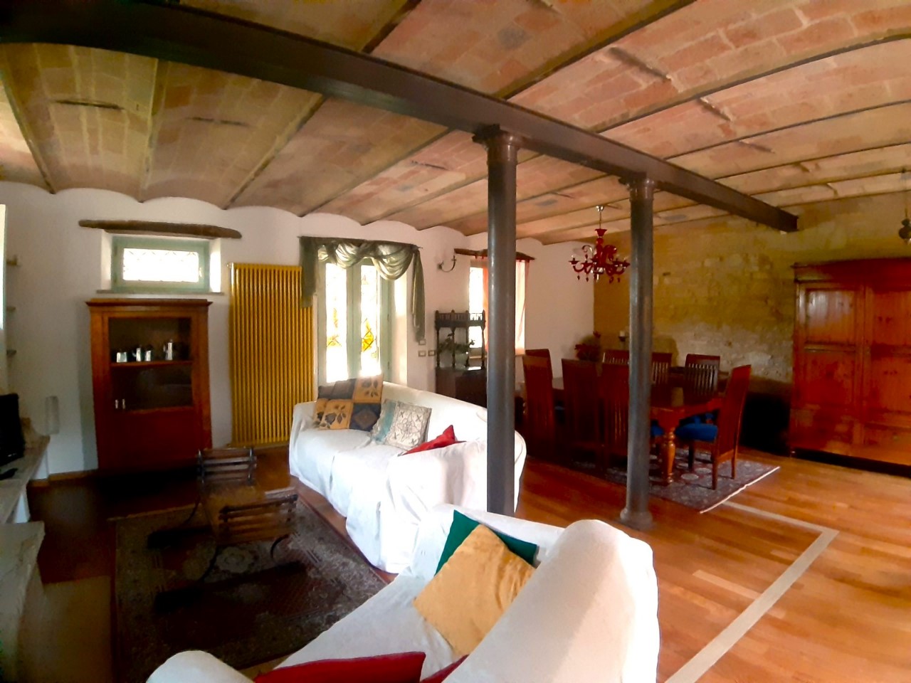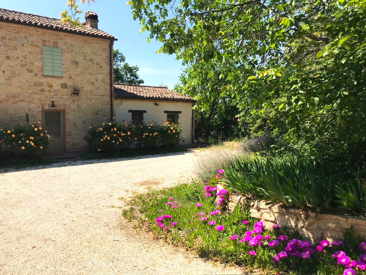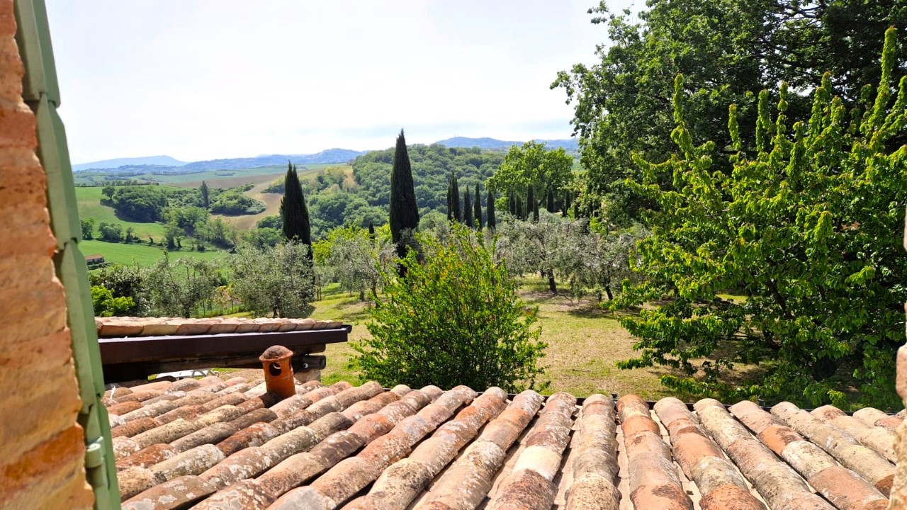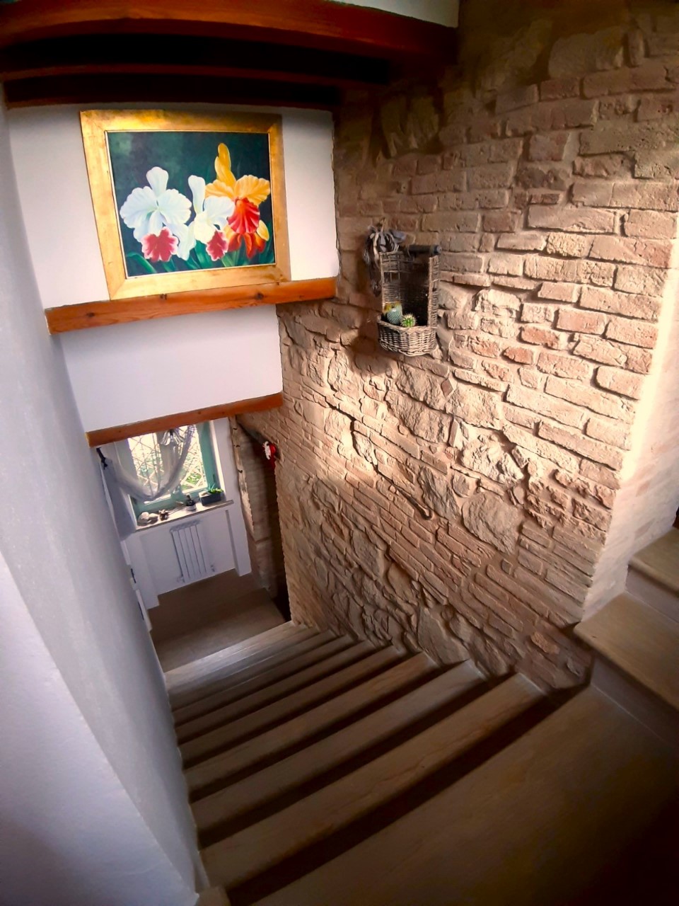 " CASA DELLE RONDINI " si trova incastonata nelle colline marchigiane, in splendida posizione panoramica e tranquilla, nel comune di Fano, a 5 Km. circa dal Centro e dalle Spiagge; a pochi Km. da Pesaro, Urbino, Gradara, Mondavio e dai tanti Borghi che hanno reso grandi la Marche nel Medioevo e Rinascimento. La casa colonica, completamente ristrutturata nel 2002, di circa 290 mq. di superficie è composta dal corpo principale (casa padronale) e da una piccola dependance attigua completamente indipendente, in lotto di circa 3.500 mq. recintato piantumato con ulivi, alberi da frutta, cipressi e querce secolari. Il corpo principale di circa mq. 230 è disposto su due livelli: PIANO TERRA composto da cucina con vista sul giardino, sala da pranzo con camino, soggiorno di mq. 50 circa con camino, caratterizzato da soffitto a voltine originali, lavanderia e bagno di servizio; il portico di mq. 40 circa coperto e collegato da due porte finestre alla cucina ed al soggiorno, offre una splendida vista sulle colline circostanti e tramonti fantastici che si possono assaporare cenando all'aperto. PIANO PRIMO composto da n. 3 camere letto matrimoniali: una di mq. 26, una con soppalco di mq. 12 ed una con ampia cabina armadio e bagno esclusivo, bagno comune. DEPENDANCE di mq. 53 circa è composta da ampia zona living con soffitti alti e porta finestra che apre sul giardino, comprende soggiorno/pranzo/cucina, ripostiglio, camera da letto matrimoniale, bagno con doccia. Alti soffitti, travi in legno a vista, parquet, pavimento in pianelle, lavandini in pietra caratterizzano le ottime finiture in tutta la casa, infissi interni ed esterni in legno douglas verniciato, finestre con doppi vetri. In un vano completamente interrato di circa mq. 14, separato dall'immobile sono presenti le apparecchiature tecniche ed autoclave di servizio per la cisterna di raccolta delle acque piovane. Impianto di riscaldamento con termosifoni a GPL, impianto antifurto volumetrico e perimetrale. Per maggiori informazioni chiamare Ag. Immobiliare AZIMUT al 335 7809070