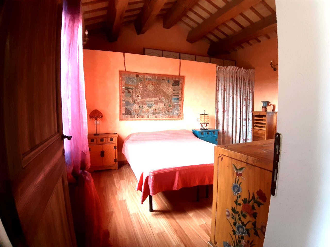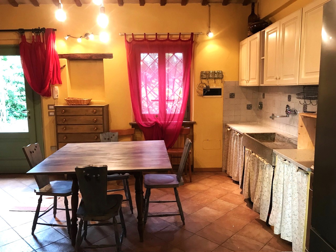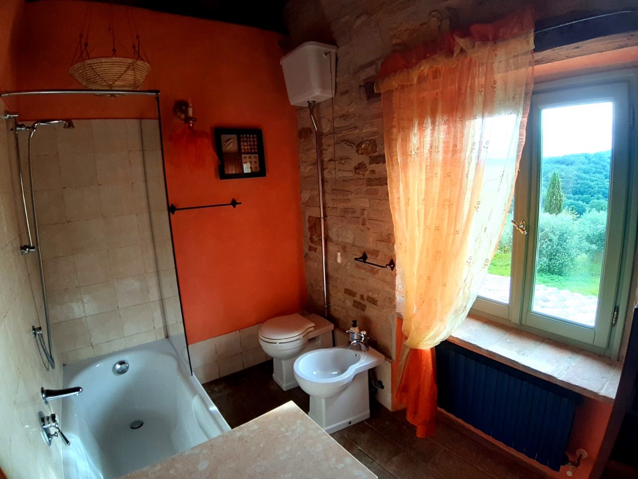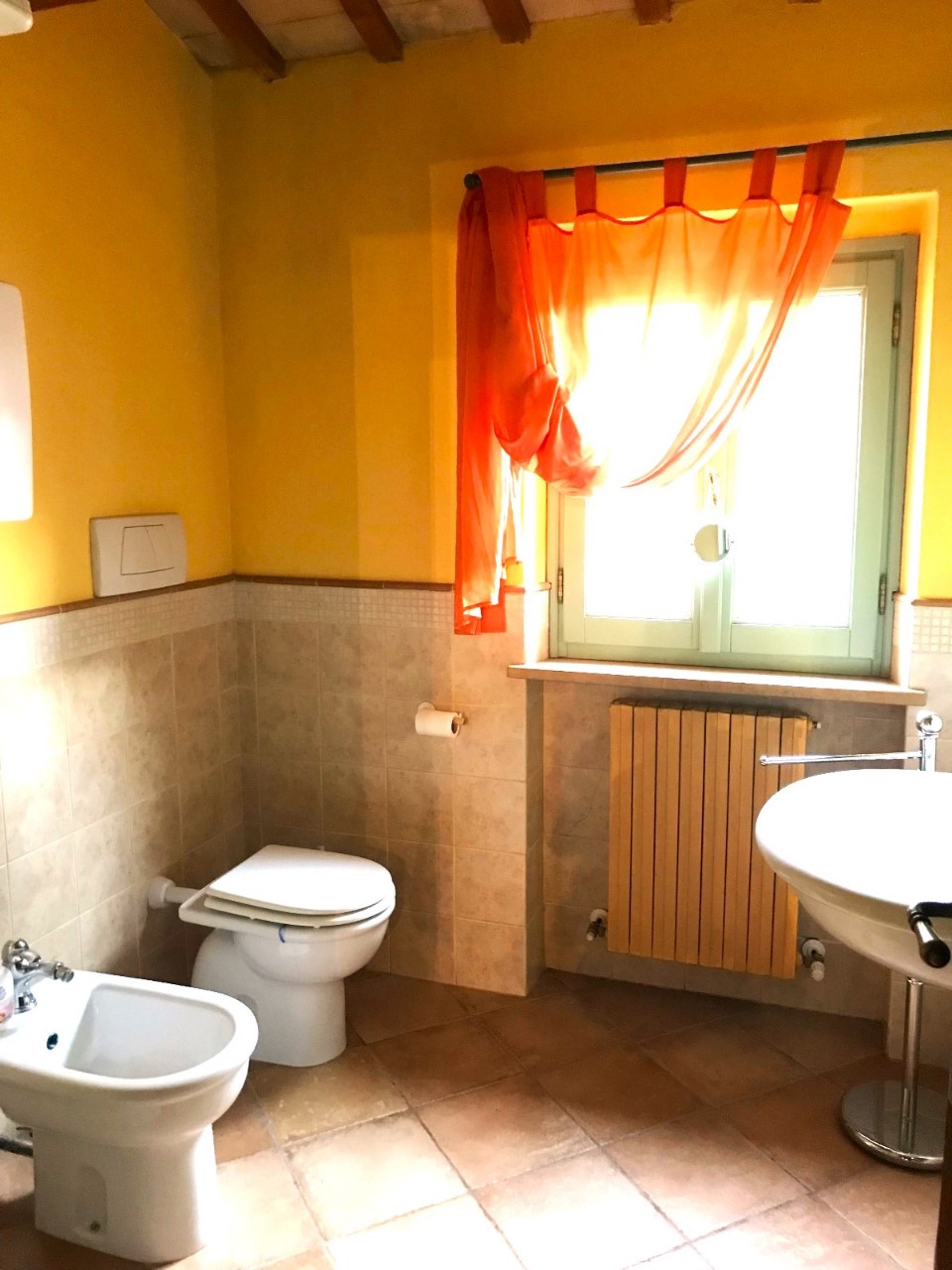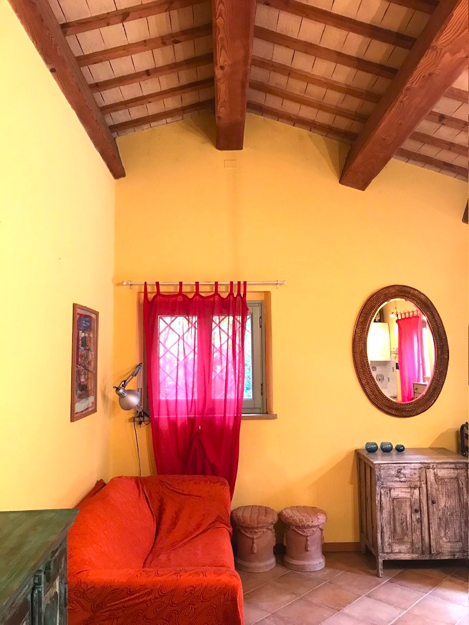 " CASA DELLE RONDINI " si trova incastonata nelle colline marchigiane, in splendida posizione panoramica e tranquilla, nel comune di Fano, a 5 Km. circa dal Centro e dalle Spiagge; a pochi Km. da Pesaro, Urbino, Gradara, Mondavio e dai tanti Borghi che hanno reso grandi la Marche nel Medioevo e Rinascimento. La casa colonica, completamente ristrutturata nel 2002, di circa 290 mq. di superficie è composta dal corpo principale (casa padronale) e da una piccola dependance attigua completamente indipendente, in lotto di circa 3.500 mq. recintato piantumato con ulivi, alberi da frutta, cipressi e querce secolari. Il corpo principale di circa mq. 230 è disposto su due livelli: PIANO TERRA composto da cucina con vista sul giardino, sala da pranzo con camino, soggiorno di mq. 50 circa con camino, caratterizzato da soffitto a voltine originali, lavanderia e bagno di servizio; il portico di mq. 40 circa coperto e collegato da due porte finestre alla cucina ed al soggiorno, offre una splendida vista sulle colline circostanti e tramonti fantastici che si possono assaporare cenando all'aperto. PIANO PRIMO composto da n. 3 camere letto matrimoniali: una di mq. 26, una con soppalco di mq. 12 ed una con ampia cabina armadio e bagno esclusivo, bagno comune. DEPENDANCE di mq. 53 circa è composta da ampia zona living con soffitti alti e porta finestra che apre sul giardino, comprende soggiorno/pranzo/cucina, ripostiglio, camera da letto matrimoniale, bagno con doccia. Alti soffitti, travi in legno a vista, parquet, pavimento in pianelle, lavandini in pietra caratterizzano le ottime finiture in tutta la casa, infissi interni ed esterni in legno douglas verniciato, finestre con doppi vetri. In un vano completamente interrato di circa mq. 14, separato dall'immobile sono presenti le apparecchiature tecniche ed autoclave di servizio per la cisterna di raccolta delle acque piovane. Impianto di riscaldamento con termosifoni a GPL, impianto antifurto volumetrico e perimetrale. Per maggiori informazioni chiamare Ag. Immobiliare AZIMUT al 335 7809070