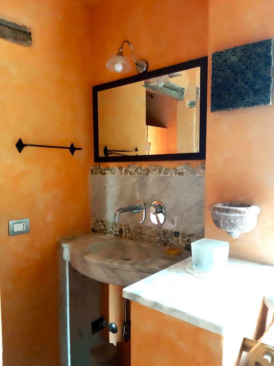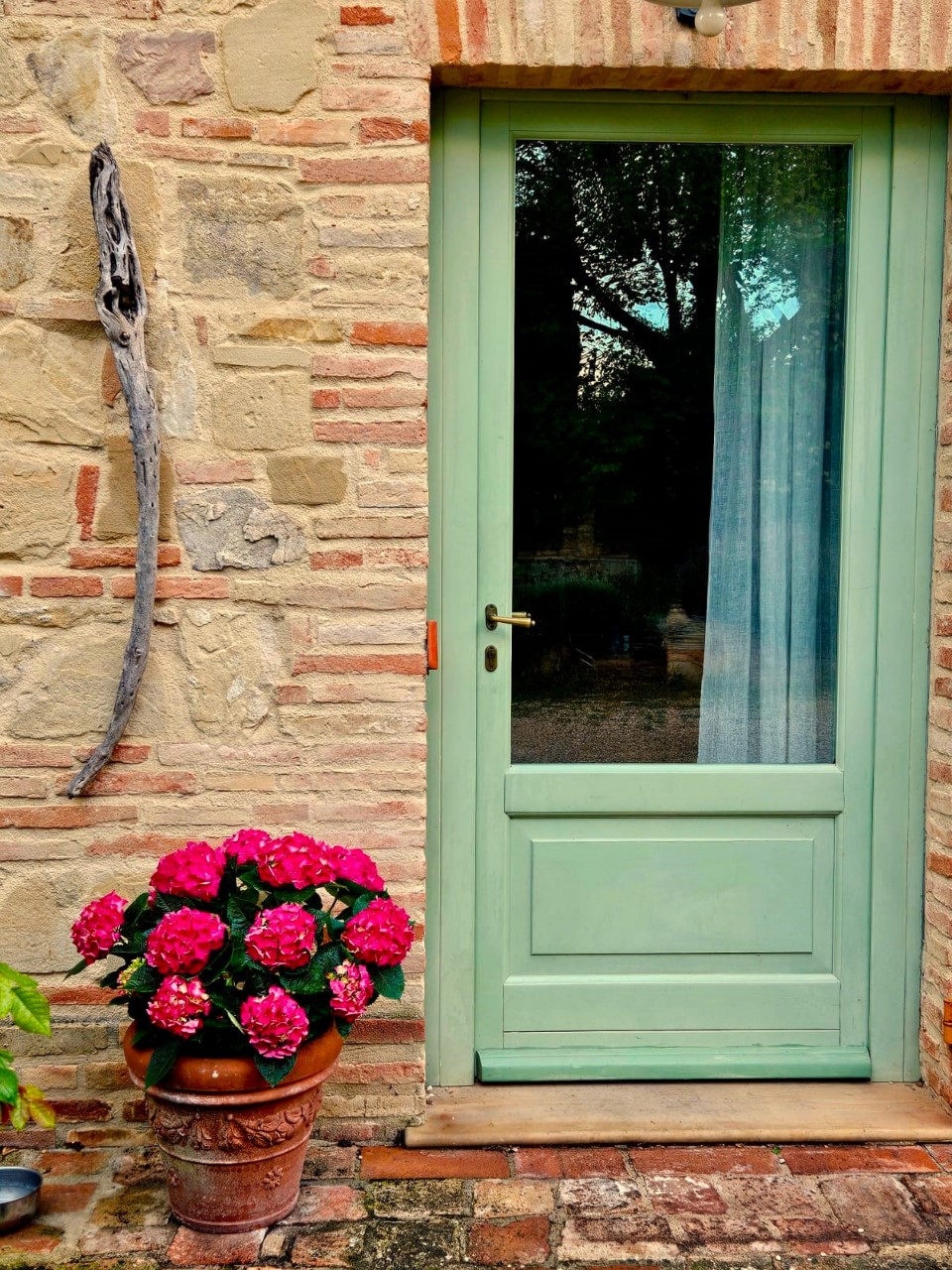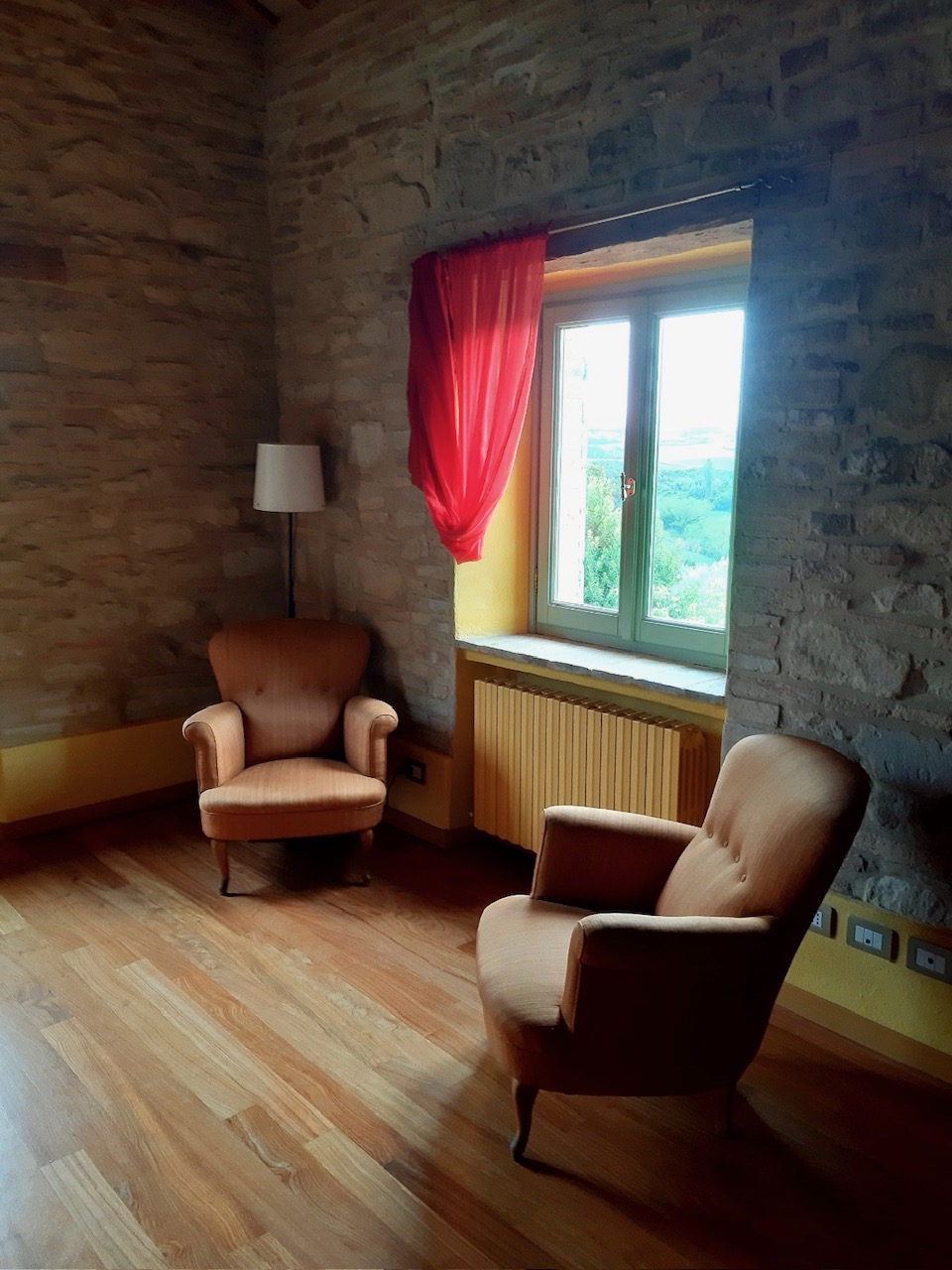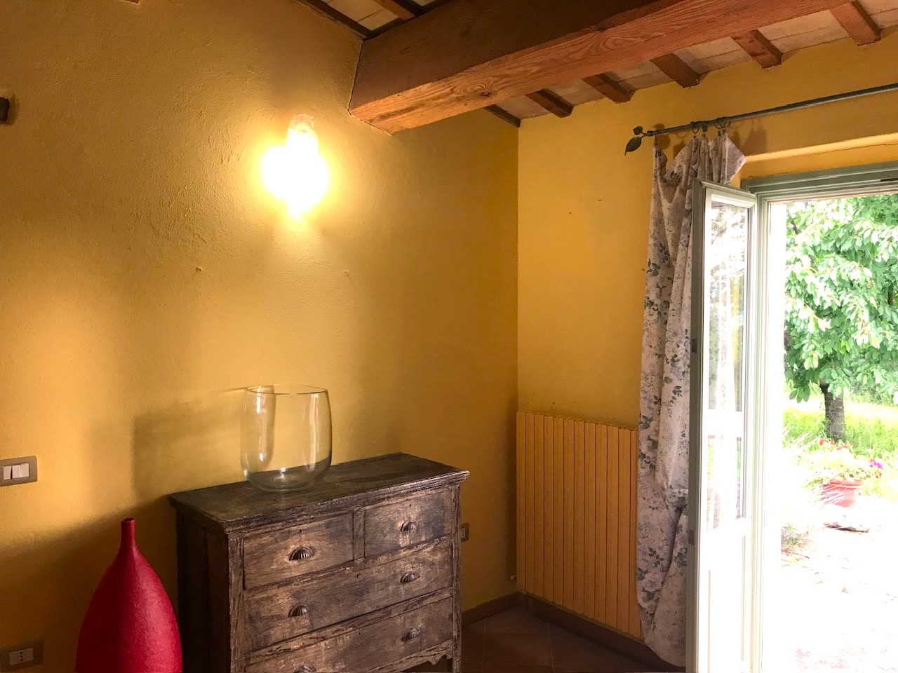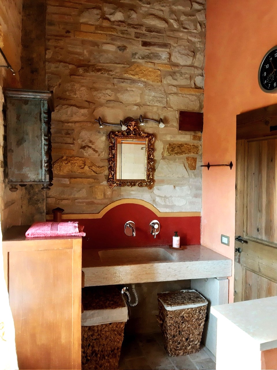 " CASA DELLE RONDINI " si trova incastonata nelle colline marchigiane, in splendida posizione panoramica e tranquilla, nel comune di Fano, a 5 Km. circa dal Centro e dalle Spiagge; a pochi Km. da Pesaro, Urbino, Gradara, Mondavio e dai tanti Borghi che hanno reso grandi la Marche nel Medioevo e Rinascimento. La casa colonica, completamente ristrutturata nel 2002, di circa 290 mq. di superficie è composta dal corpo principale (casa padronale) e da una piccola dependance attigua completamente indipendente, in lotto di circa 3.500 mq. recintato piantumato con ulivi, alberi da frutta, cipressi e querce secolari. Il corpo principale di circa mq. 230 è disposto su due livelli: PIANO TERRA composto da cucina con vista sul giardino, sala da pranzo con camino, soggiorno di mq. 50 circa con camino, caratterizzato da soffitto a voltine originali, lavanderia e bagno di servizio; il portico di mq. 40 circa coperto e collegato da due porte finestre alla cucina ed al soggiorno, offre una splendida vista sulle colline circostanti e tramonti fantastici che si possono assaporare cenando all'aperto. PIANO PRIMO composto da n. 3 camere letto matrimoniali: una di mq. 26, una con soppalco di mq. 12 ed una con ampia cabina armadio e bagno esclusivo, bagno comune. DEPENDANCE di mq. 53 circa è composta da ampia zona living con soffitti alti e porta finestra che apre sul giardino, comprende soggiorno/pranzo/cucina, ripostiglio, camera da letto matrimoniale, bagno con doccia. Alti soffitti, travi in legno a vista, parquet, pavimento in pianelle, lavandini in pietra caratterizzano le ottime finiture in tutta la casa, infissi interni ed esterni in legno douglas verniciato, finestre con doppi vetri. In un vano completamente interrato di circa mq. 14, separato dall'immobile sono presenti le apparecchiature tecniche ed autoclave di servizio per la cisterna di raccolta delle acque piovane. Impianto di riscaldamento con termosifoni a GPL, impianto antifurto volumetrico e perimetrale. Per maggiori informazioni chiamare Ag. Immobiliare AZIMUT al 335 7809070