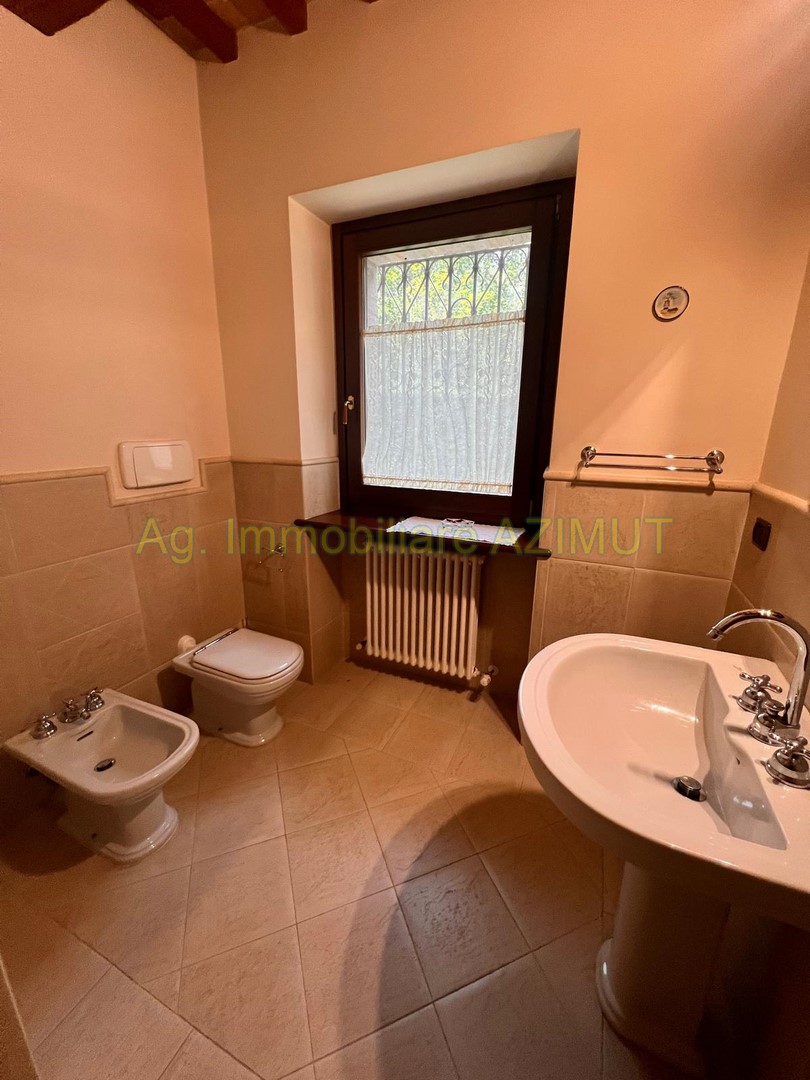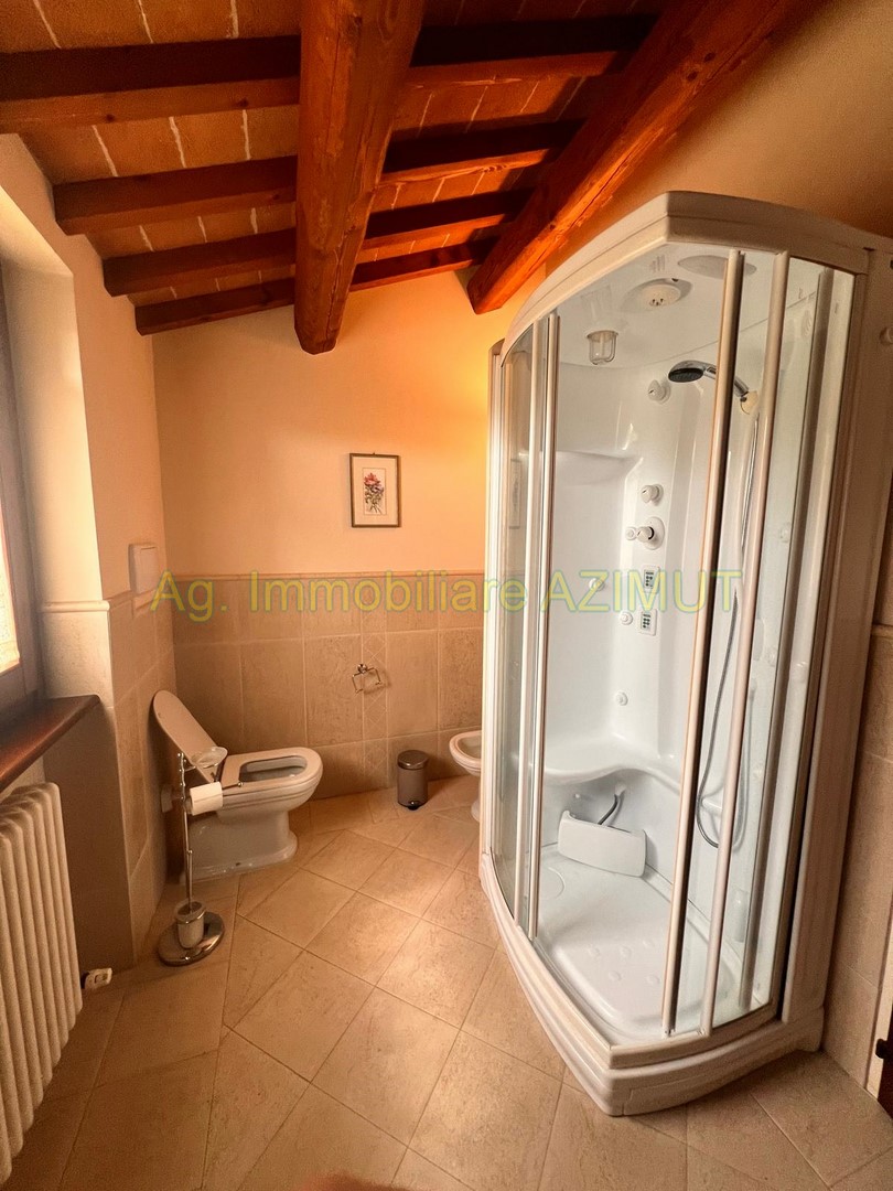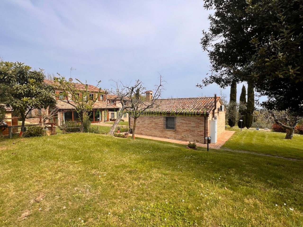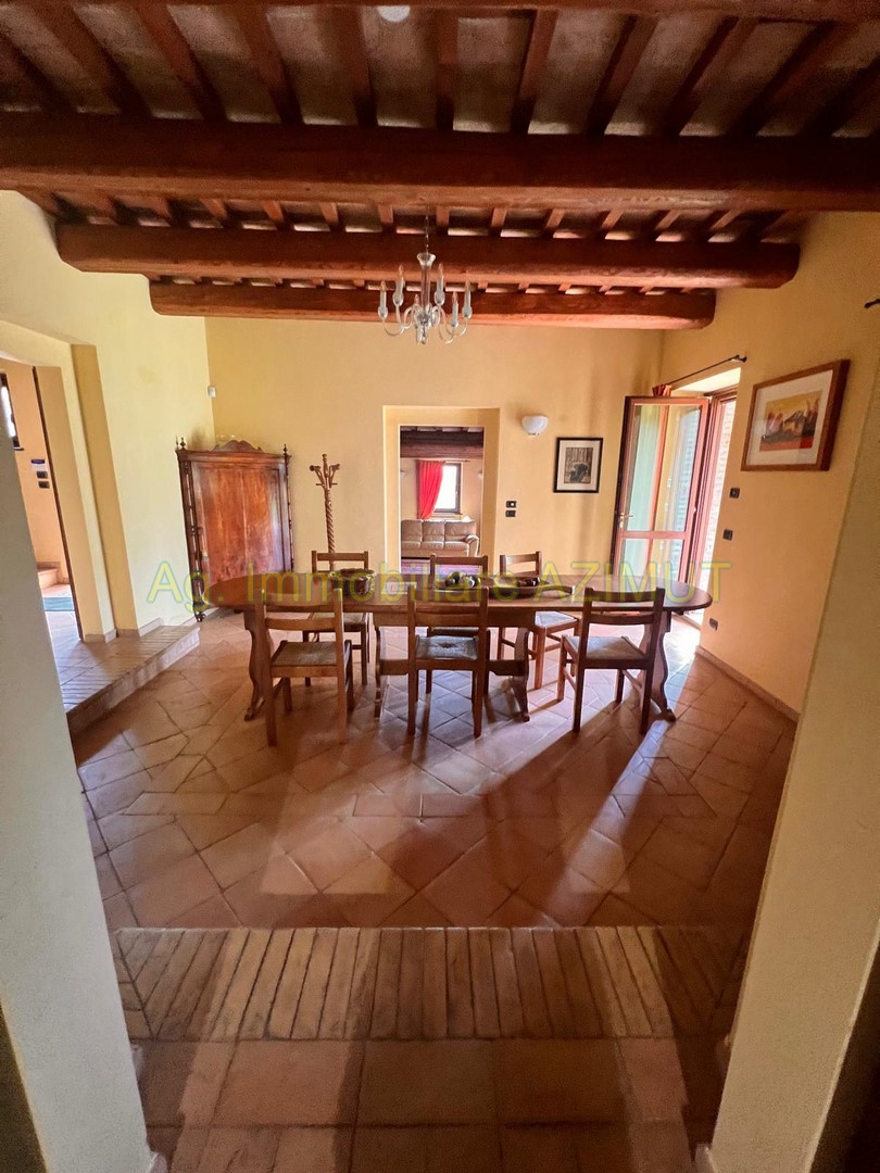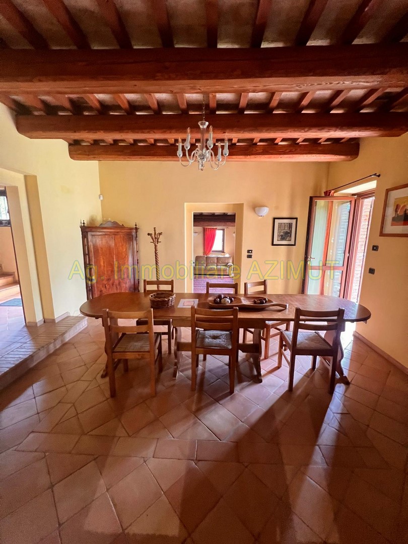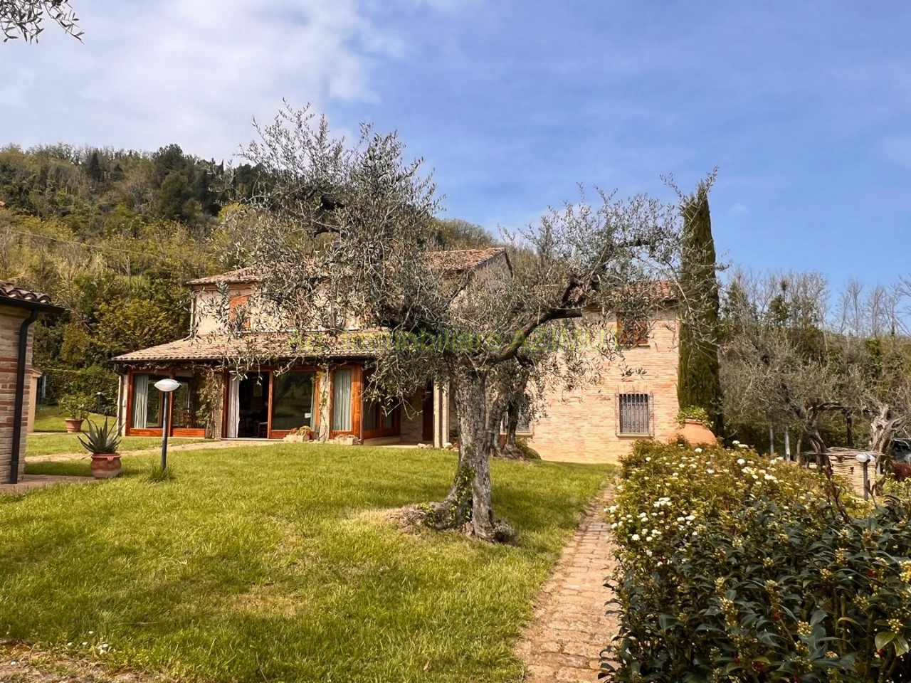 FANO: Località Prelato, incastonata nella campagna marchigiana, con vista mare panoramica su Fano, vendesi Villa di Campagna, a 5 km. dal Centro Storico e dal mare, facilmente raggiungibile con strada asfaltata, completamente ristrutturata nel 2002 mantenendo lo stile e parte del materiale della vecchia casa colonica tipica marchigiana. La Villa su due livelli di mq. 170 circa ciascuno è cosi composta: PIANO TERRA ampio ingresso, grande salone con camino, sala pranzo, grande cucina con camino, dispensa, ripostiglio, bagno finestrato, portico verandato di mq. 45 circa. PIANO PRIMO composto da camera padronale con cabina armadio e bagno , n. 3 camere letto con bagno finestrati, cameretta/studio; al Piano Terra Dependance di mq. 60 circa, n. 3 ripostigli per mq. 50 circa ad uso lavanderia e centrale termica, garage di mq. 120 circa al Piano Interrato, piscina di m. 14x4; giardino piantumato con irrigazione automatica, pozzo, raccolta acque piovane, terreno di ha. 4.0 circa composto da uliveto con n. 460 piante di ulivo da cui si ricava un eccellente e.v.o,, frutteto e bosco ceduo tutto completamente recintato. La parte energetica è il fiore all'occhiello della Villa in quanto è stato adottato il geotermico per il riscaldamento, pannelli solari per acqua calda e foto voltaico per pompe di calore, GPL per cucina e dependance. Per maggiori informazioni chiamare Ag. Immobiliare AZIMUT al 335 7809070