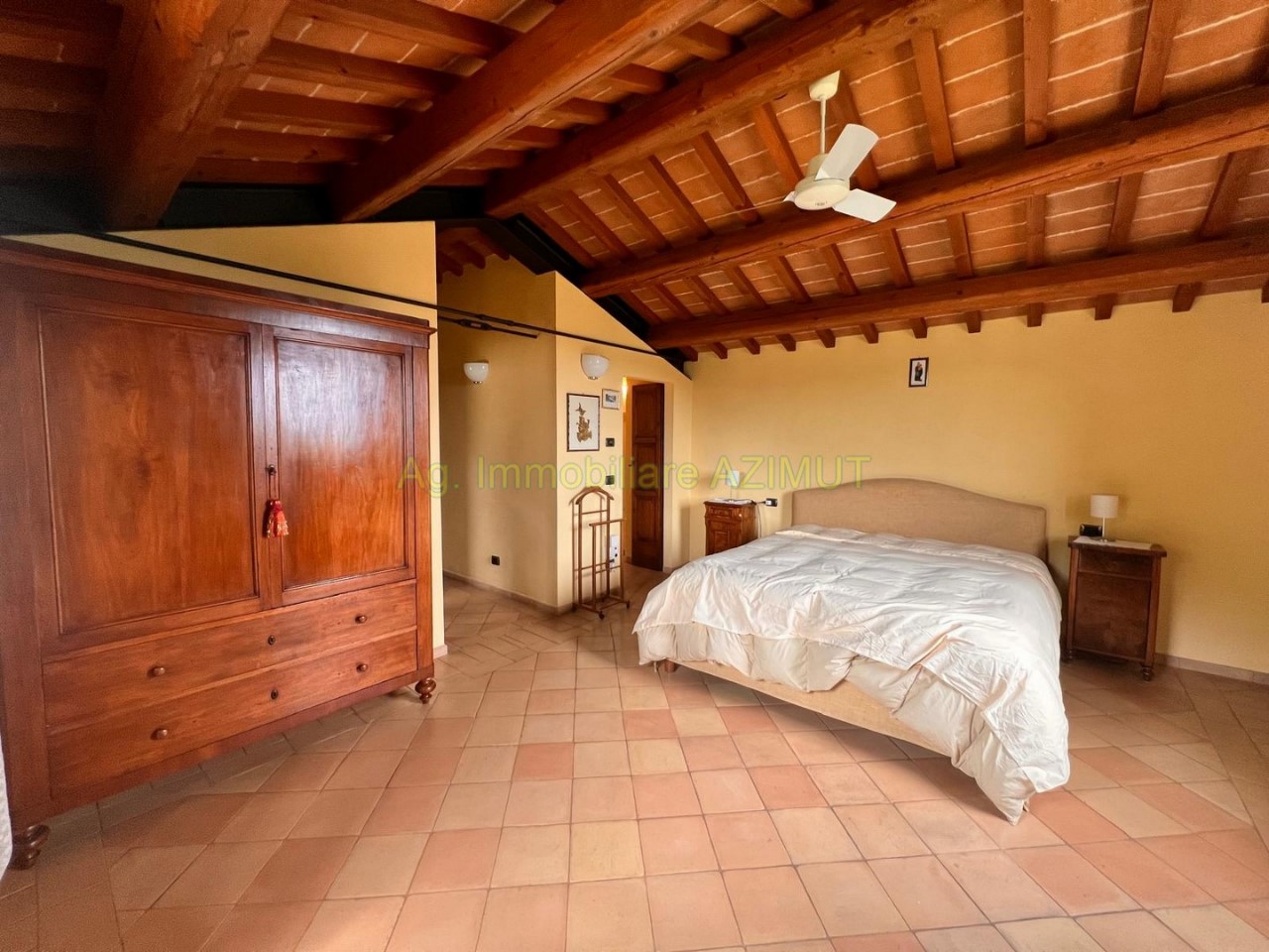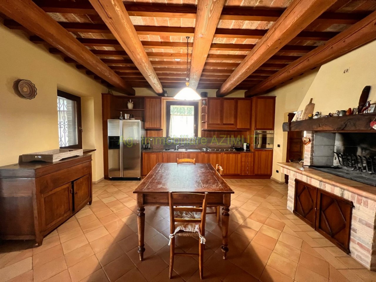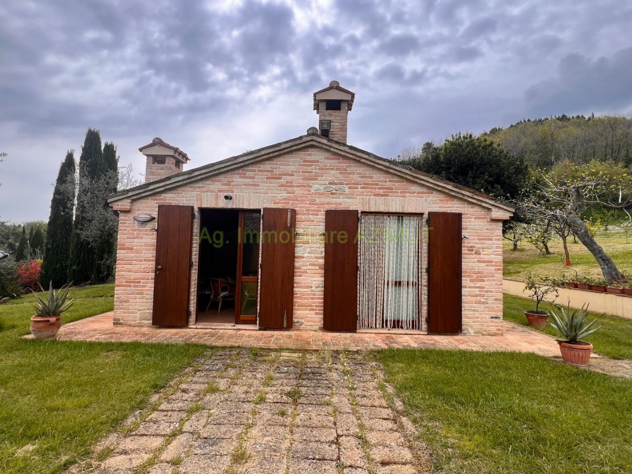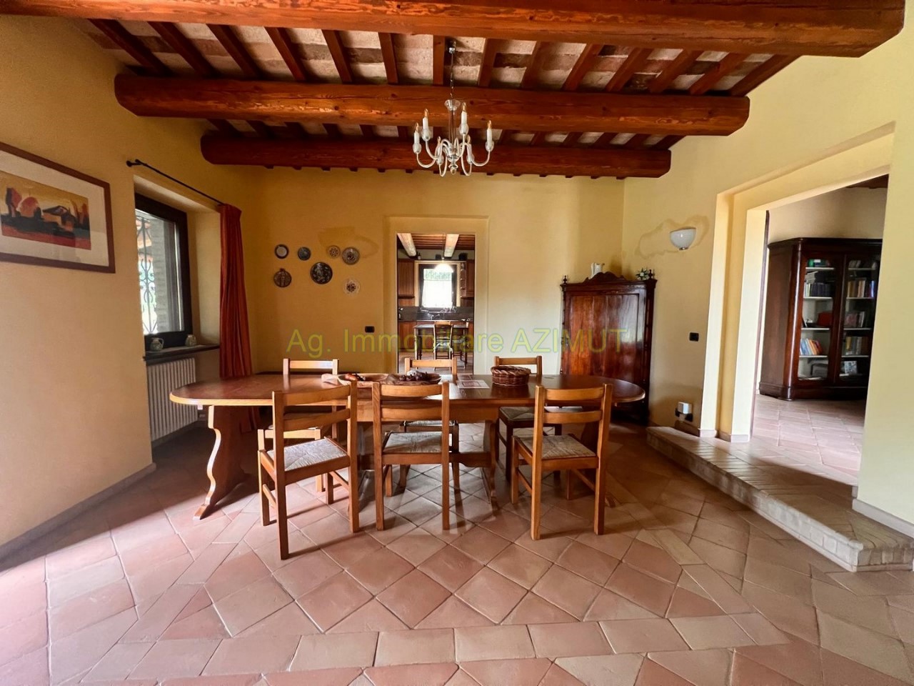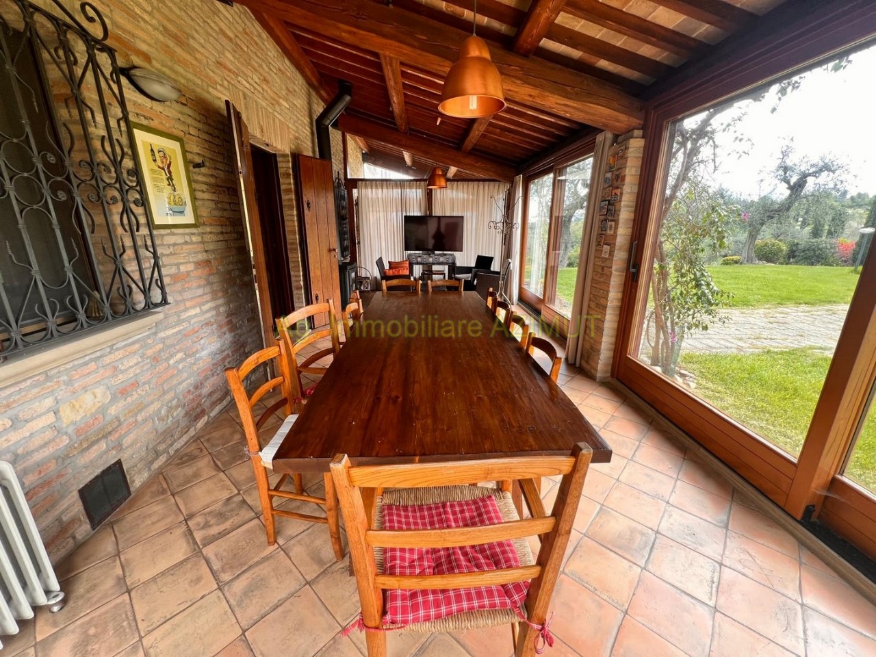 FANO: Località Prelato, incastonata nella campagna marchigiana, con vista mare panoramica su Fano, vendesi Villa di Campagna, a 5 km. dal Centro Storico e dal mare, facilmente raggiungibile con strada asfaltata, completamente ristrutturata nel 2002 mantenendo lo stile e parte del materiale della vecchia casa colonica tipica marchigiana. La Villa su due livelli di mq. 170 circa ciascuno è cosi composta: PIANO TERRA ampio ingresso, grande salone con camino, sala pranzo, grande cucina con camino, dispensa, ripostiglio, bagno finestrato, portico verandato di mq. 45 circa. PIANO PRIMO composto da camera padronale con cabina armadio e bagno , n. 3 camere letto con bagno finestrati, cameretta/studio; al Piano Terra Dependance di mq. 60 circa, n. 3 ripostigli per mq. 50 circa ad uso lavanderia e centrale termica, garage di mq. 120 circa al Piano Interrato, piscina di m. 14x4; giardino piantumato con irrigazione automatica, pozzo, raccolta acque piovane, terreno di ha. 4.0 circa composto da uliveto con n. 460 piante di ulivo da cui si ricava un eccellente e.v.o,, frutteto e bosco ceduo tutto completamente recintato. La parte energetica è il fiore all'occhiello della Villa in quanto è stato adottato il geotermico per il riscaldamento, pannelli solari per acqua calda e foto voltaico per pompe di calore, GPL per cucina e dependance. Per maggiori informazioni chiamare Ag. Immobiliare AZIMUT al 335 7809070