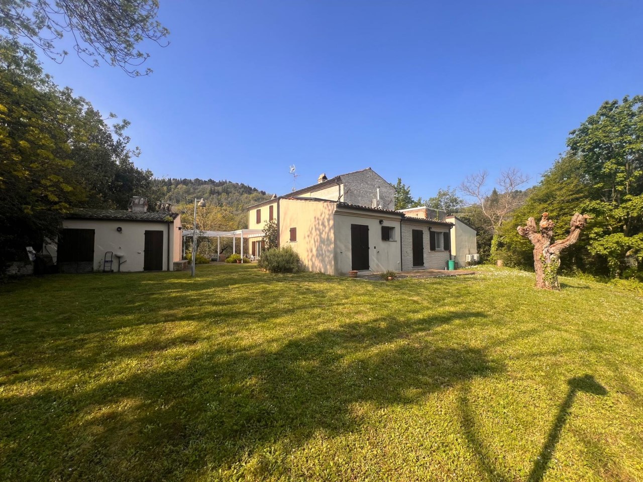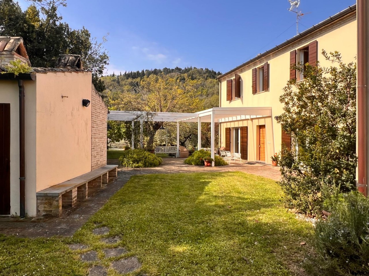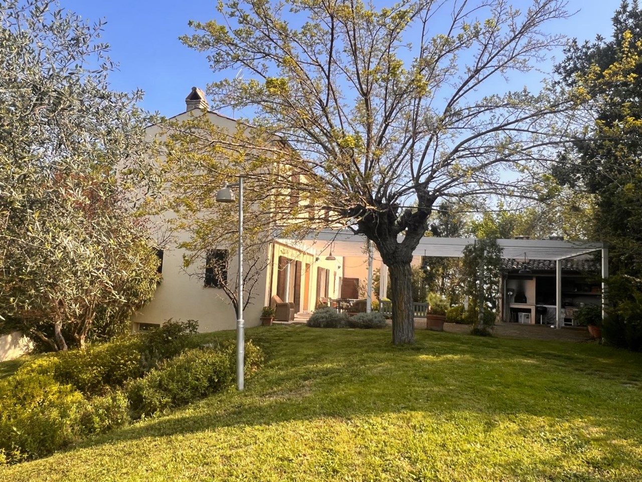 FANO: Località Prelato, immerso nel verde, ai piedi della collina di Monte Giove, con vista mare, vendesi casolare completamente ristrutturato nel 2013, su due livelli, con terreno di ha. 2.5 circa con n. 200 ulivi , alberi da frutta , bosco, piscina 5x 12 mt., pergola con fotovoltaico, parcheggio esterno . PIANO TERRA di mq. 140 circa composto da corpo centrale con pergola, grande zona living con soggiorno, sala pranzo, cucina, studio, camera letto con bagno, bagno, altra pergola frangisole collega altre due camere con bagno; capanno di mq. 17 circa adibito a locate tecnico. PIANO PRIMO di mq. 80 circa composto da corridoio n. 4 camere letto, n. 2 bagni finestrati. PIANO SEMINTERRATO di mq. 100 circa composto da garage, cantina lavanderia, guardaroba bagno. Impianto di riscaldamento a metano, aria condizionata in tutte le camere, impianto fotovoltaico di 6 Kw, n. 2 pozzi e cisterna di raccolta acqua piovana. Per maggiori informazioni chiamare Ag. Immobiliare AZIMUT al 335 7809070