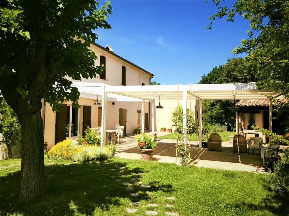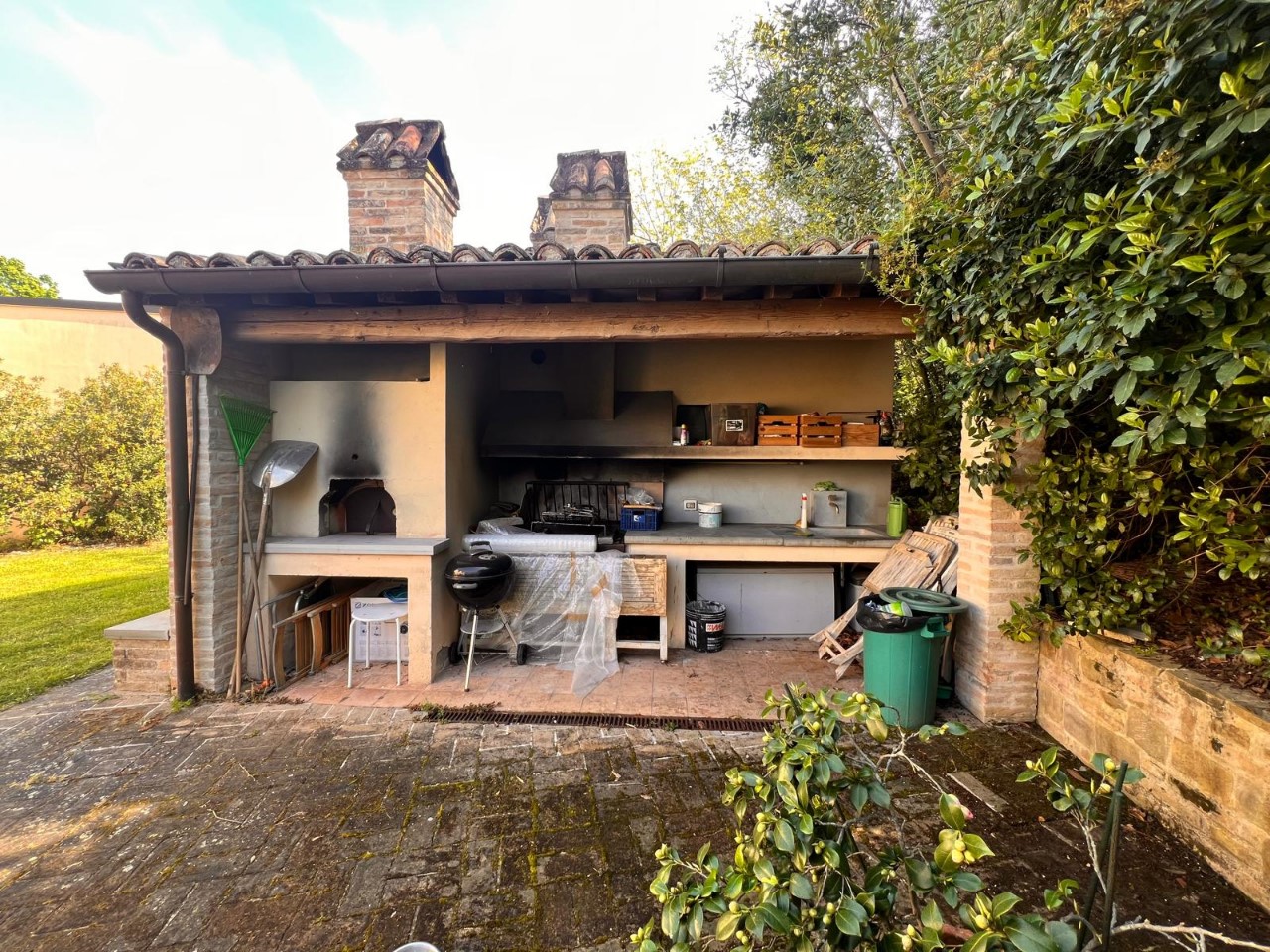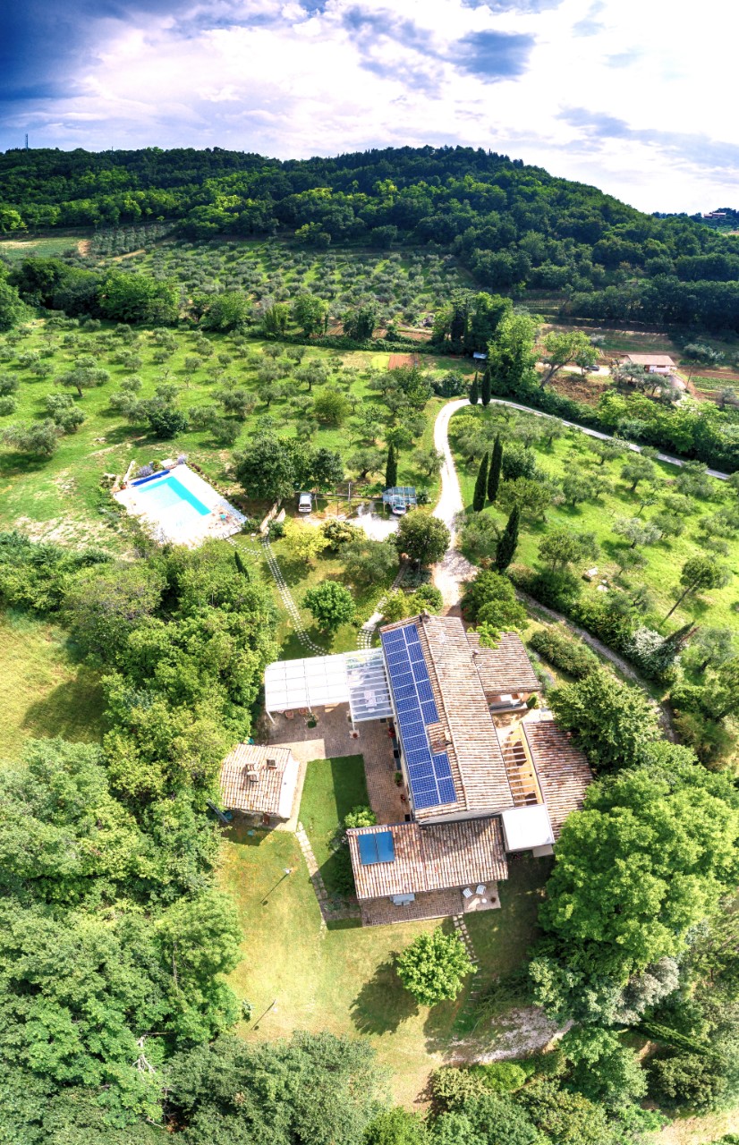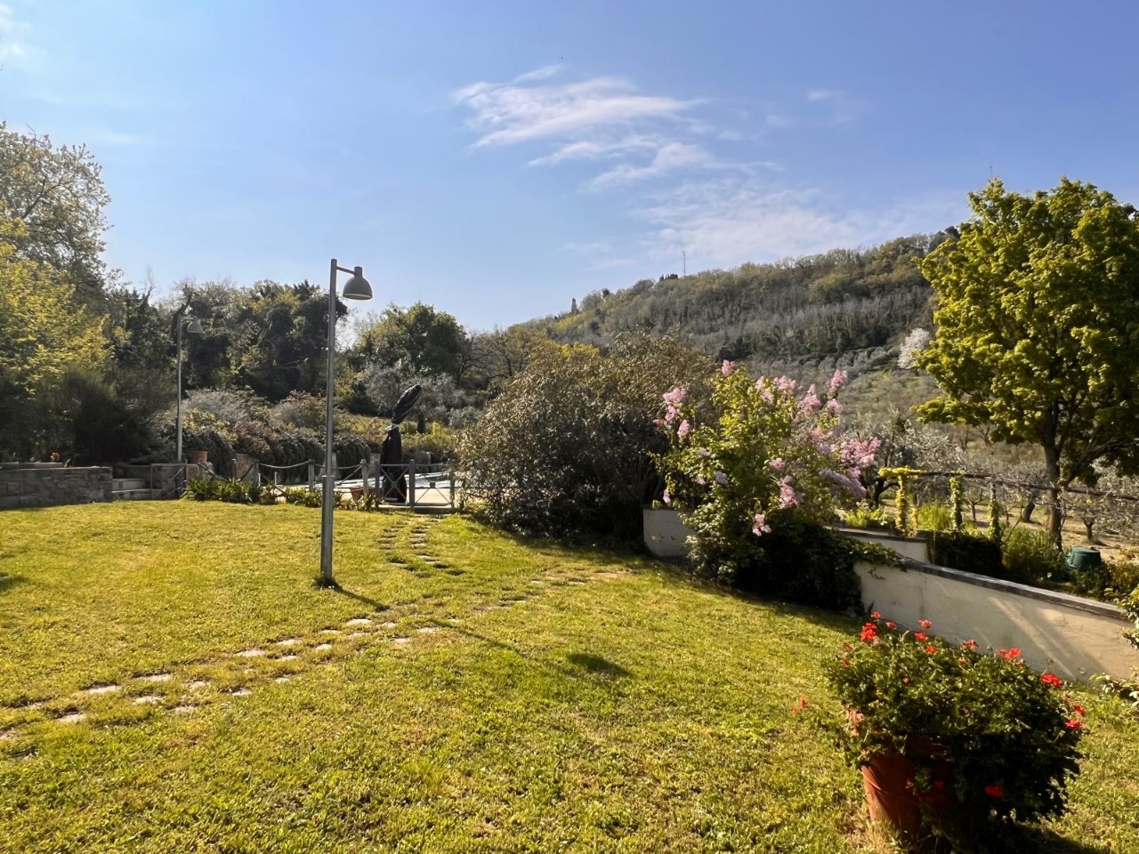 FANO: Località Prelato, immerso nel verde, ai piedi della collina di Monte Giove, con vista mare, vendesi casolare completamente ristrutturato nel 2013, su due livelli, con terreno di ha. 2.5 circa con n. 200 ulivi , alberi da frutta , bosco, piscina 5x 12 mt., pergola con fotovoltaico, parcheggio esterno . PIANO TERRA di mq. 140 circa composto da corpo centrale con pergola, grande zona living con soggiorno, sala pranzo, cucina, studio, camera letto con bagno, bagno, altra pergola frangisole collega altre due camere con bagno; capanno di mq. 17 circa adibito a locate tecnico. PIANO PRIMO di mq. 80 circa composto da corridoio n. 4 camere letto, n. 2 bagni finestrati. PIANO SEMINTERRATO di mq. 100 circa composto da garage, cantina lavanderia, guardaroba bagno. Impianto di riscaldamento a metano, aria condizionata in tutte le camere, impianto fotovoltaico di 6 Kw, n. 2 pozzi e cisterna di raccolta acqua piovana. Per maggiori informazioni chiamare Ag. Immobiliare AZIMUT al 335 7809070
