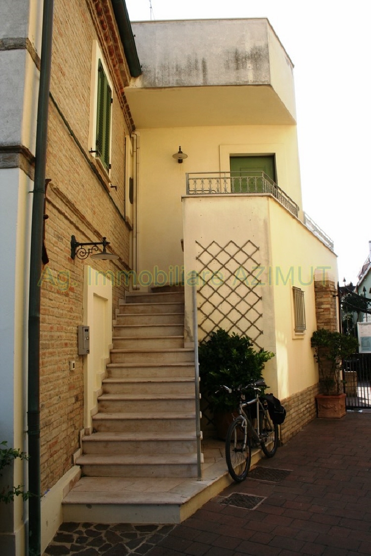 FANO: Porto, Casa di fila di testa, a mattoncini, su due livelli di mq. 90 circa a piano, con doppio ingresso, attualmente accatastata come negozio/bottega. PIANO TERRA composto da , ingresso lato Porto con scoperto esclusivo, ampio locale con tre vetrine, locale da sbroglio, ripostiglio, bagno, PIANO PRIMO con ingresso indipendente con scala esterna e piccoco scoperto al piano terra, composto da tre ampi locali, bagno, piccolo terrazzo con vista M. Giove, PIANO SECONDO terrazzo panoramico di mq. 38 circa con vista Porto turistico e Mare fino a Pesaro. Possibilità di trasformare l'immobile in uno o due bellissimi appartamenti con vista mare. Termo autonomo, buone finiture. Per maggiori informazioni chiamare Ag. Immobiliare AZIMUT al 335 7809070