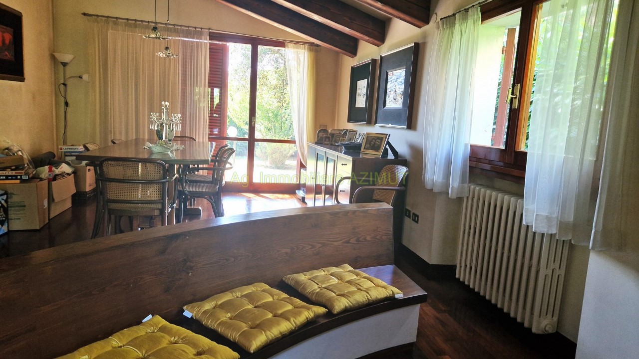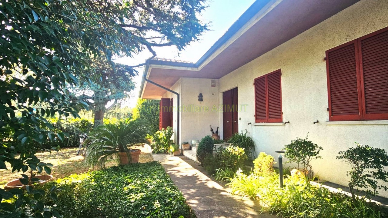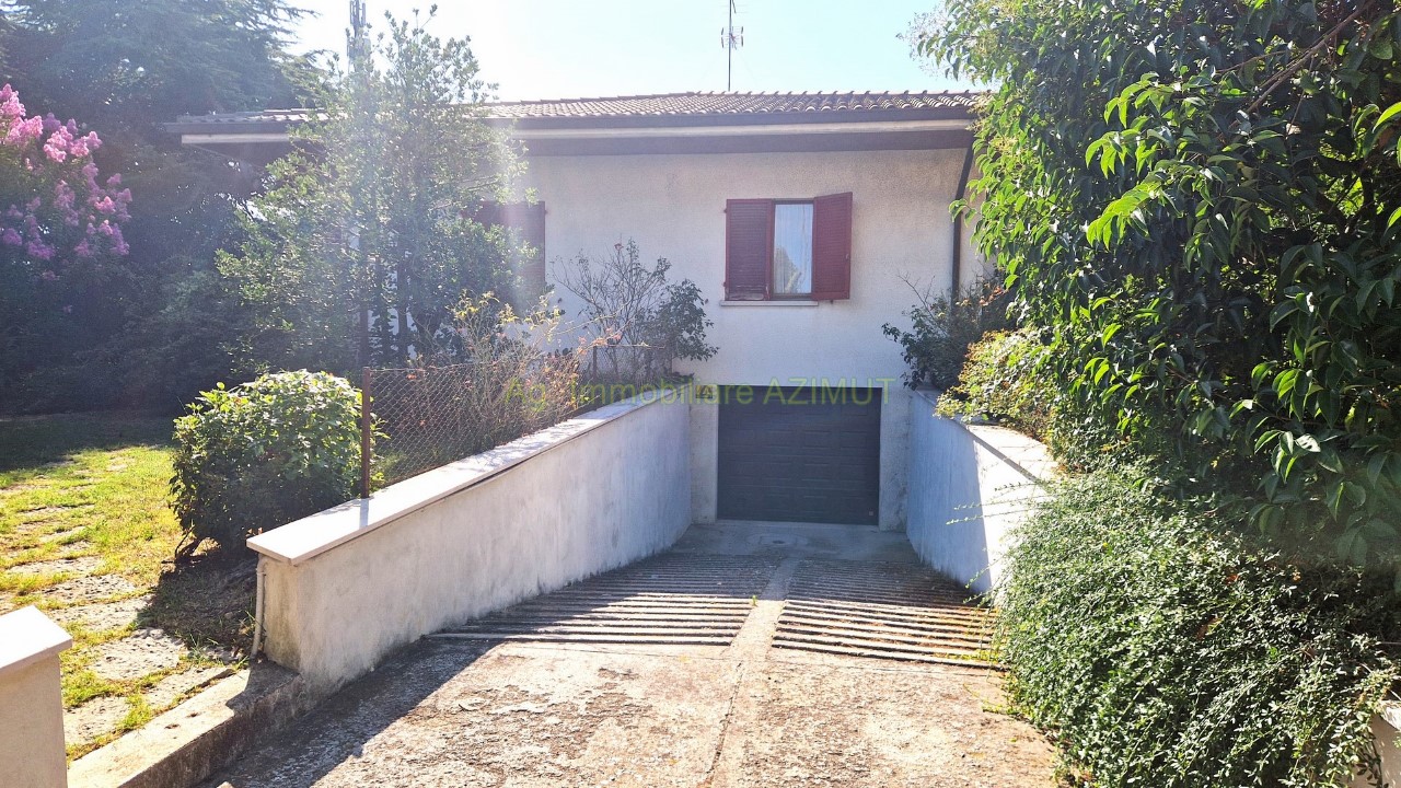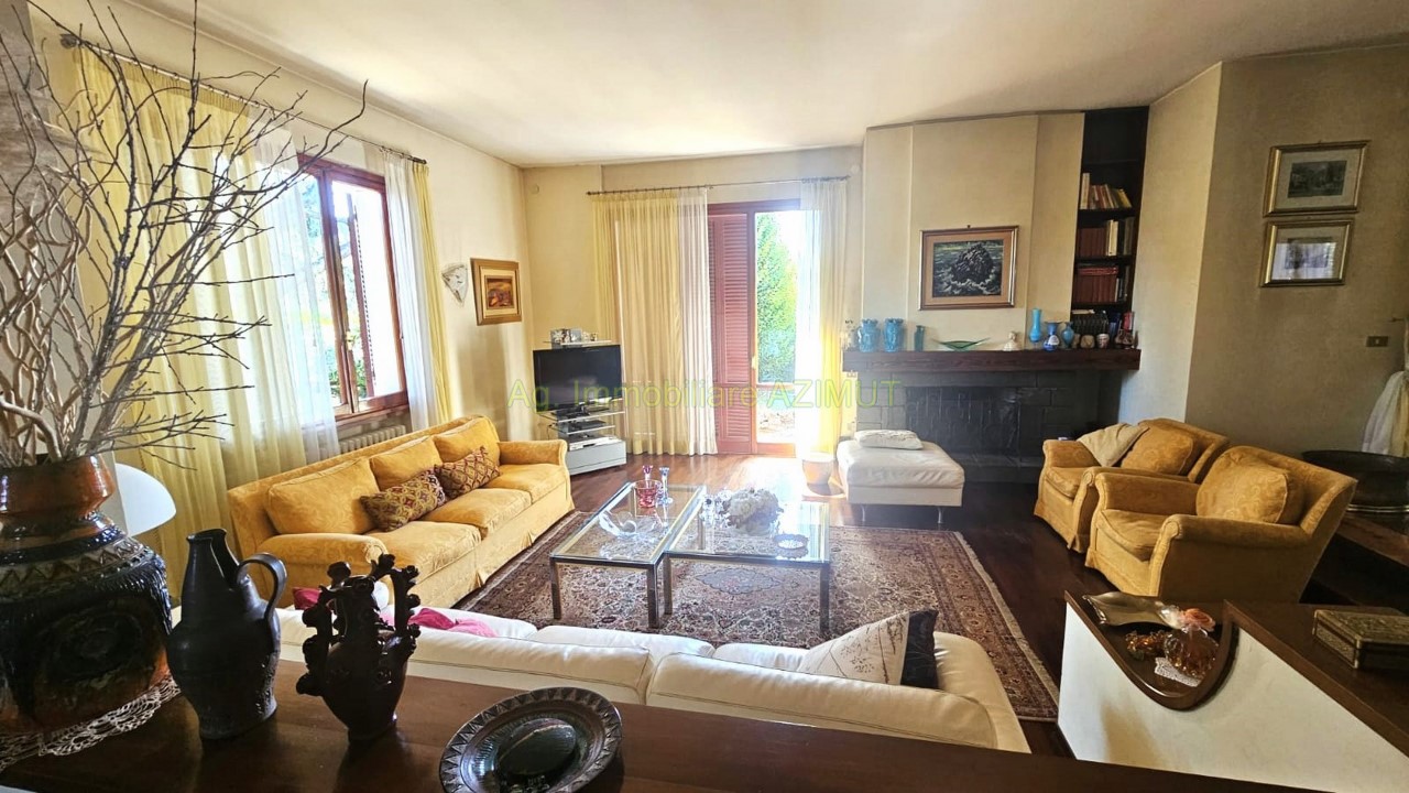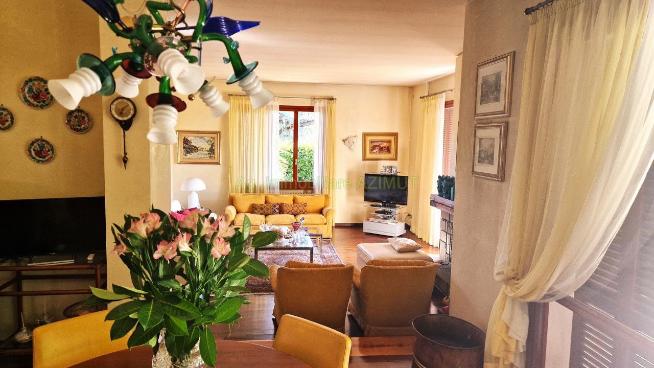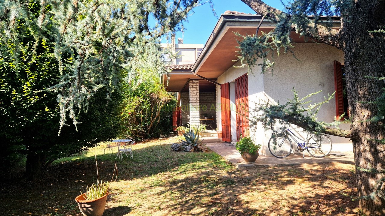 FANO: in zona limitrofa al Centro vendesi Villetta unifamiliare, costruita negli anni '70, in calcestruzzo intonacato, piano terra rialzato e piano Interrato, in lotto di mq. 970 circa con giardino piantumato di piante pregiate e siepe di Lauroceraso lungo il perimetro della proprietà. La villetta è così composta: PIANO TERRA rialzato di mq. 220 circa, ingresso, disimpegno, grande soggiorno luminoso con caminetto, sala da pranzo con affaccio al porticato di mq. 18 circa, attiguo altro grande locale adibito a "tavernetta" con travi a vista, caminetto ed angolo "bar"; cucina abitabile con accesso al giardino, zona notte composta da n. 2 camere matrimoniali, n. 1 camera singola, n. 2 bagni. Disimpegno con scala a chiocciola per l'accesso interno al PIANO INTERRATO di mq. 135 circa composto da garage, sala biliardo, ripostiglio, cantina e centrale termica. La Villetta è in buono stato di conservazione, in parte ristrutturata e rinfrescata anni '90,termosifoni a gas metano, infissi in legno douglas con ampie vetrate, le finiture lussuose dell'epoca mantengono tutto il loro fascino donando alla casa il sapore di quegli anni. Per maggiori informazioni chiamare Ag. Immobiliare AZIMUT al 335 7809070