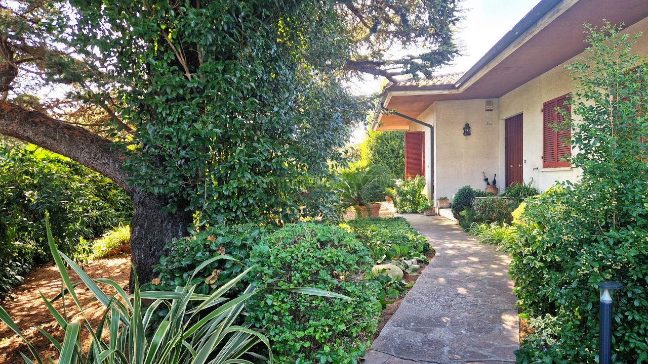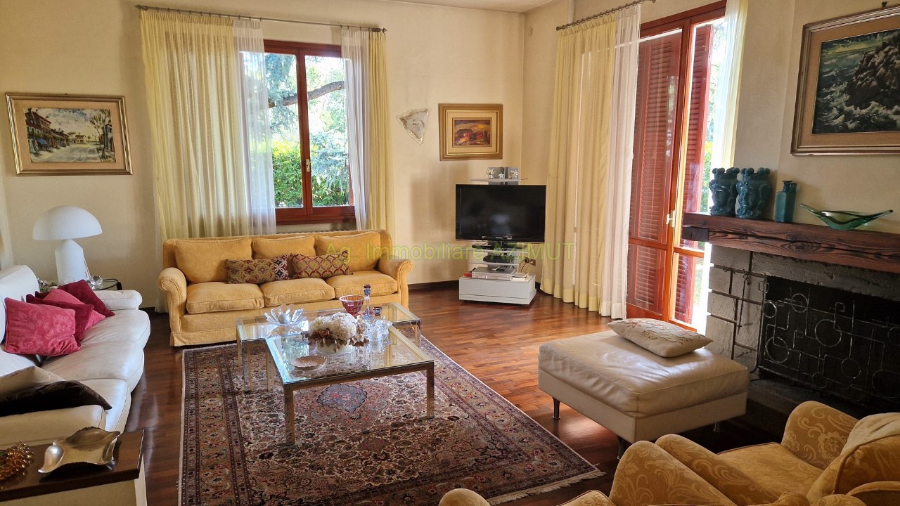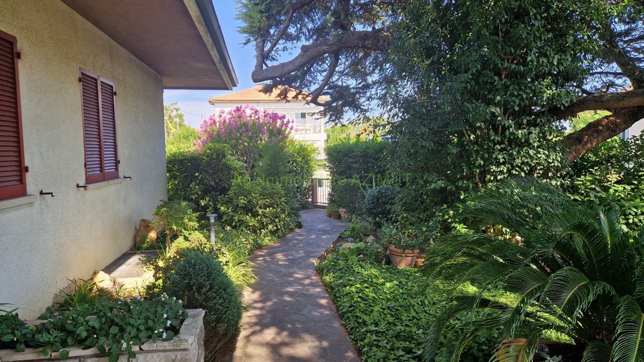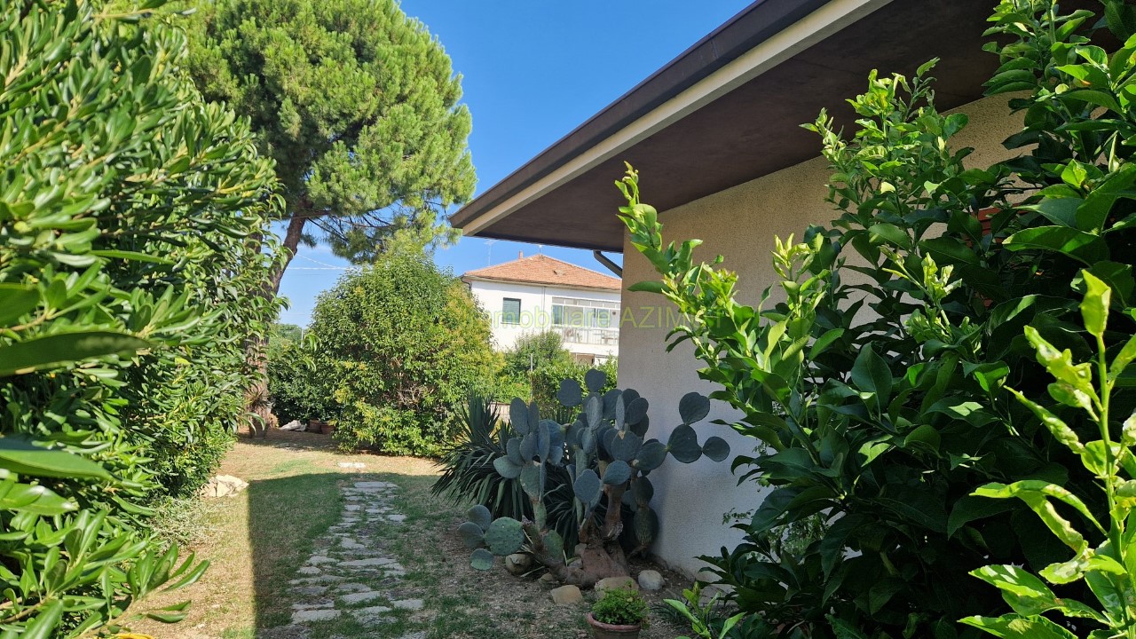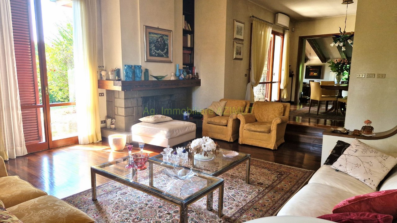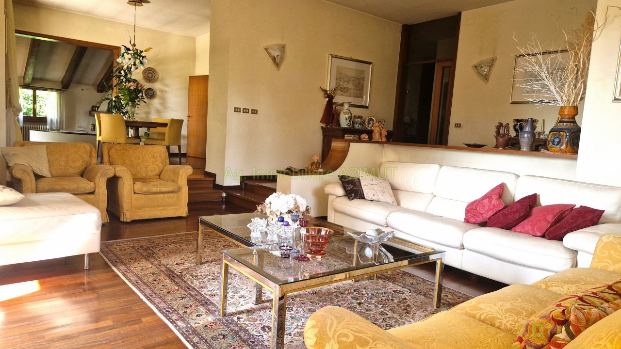 FANO: in zona limitrofa al Centro vendesi Villetta unifamiliare, costruita negli anni '70, in calcestruzzo intonacato, piano terra rialzato e piano Interrato, in lotto di mq. 970 circa con giardino piantumato di piante pregiate e siepe di Lauroceraso lungo il perimetro della proprietà. La villetta è così composta: PIANO TERRA rialzato di mq. 220 circa, ingresso, disimpegno, grande soggiorno luminoso con caminetto, sala da pranzo con affaccio al porticato di mq. 18 circa, attiguo altro grande locale adibito a "tavernetta" con travi a vista, caminetto ed angolo "bar"; cucina abitabile con accesso al giardino, zona notte composta da n. 2 camere matrimoniali, n. 1 camera singola, n. 2 bagni. Disimpegno con scala a chiocciola per l'accesso interno al PIANO INTERRATO di mq. 135 circa composto da garage, sala biliardo, ripostiglio, cantina e centrale termica. La Villetta è in buono stato di conservazione, in parte ristrutturata e rinfrescata anni '90,termosifoni a gas metano, infissi in legno douglas con ampie vetrate, le finiture lussuose dell'epoca mantengono tutto il loro fascino donando alla casa il sapore di quegli anni. Per maggiori informazioni chiamare Ag. Immobiliare AZIMUT al 335 7809070