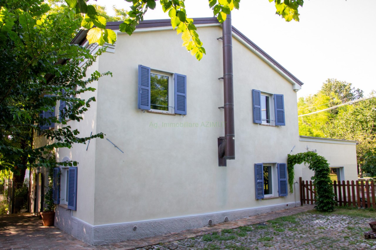 MONTEFELCINO: Vendesi casa singola di campagna completamente ristrutturata nel 2010 a norma antisismica, mantenendo il vecchio stile della casa : muri interni in pietra rosa del Fulo a vista, parte dei pavimenti con mattoni marchigiani vecchi levigati e verniciati, porte interne ed esterne originali restaurate. La casa, in lotto di mq. 1.143, si sviluppa su due piani: PIANO TERRA di mq. 112 composto da ingresso, n. 2 saloni , di cui uno con camino , grande cucina con doppio affaccio sul giardino, bagno ricavato dal sottoscala. PIANO PRIMO di mq. 84 circa composto da n. 3 camere letto con travi a vista, bagno principale con doppia finestra, scala di accesso con scalini in pietra. L'abitazione ha doppia possibilità di riscaldamento a pellet o a gas liquido con bombolone interrato; il camino è dotato di aereazione per scaldare l'ambiente del soggiorno. Giardino di mq. 1.031 recintato e piantumato con ulivi ed alberi da frutto. Per maggiori informazioni chiamare Ag. Immobiliare AZIMUT al 335 7809070